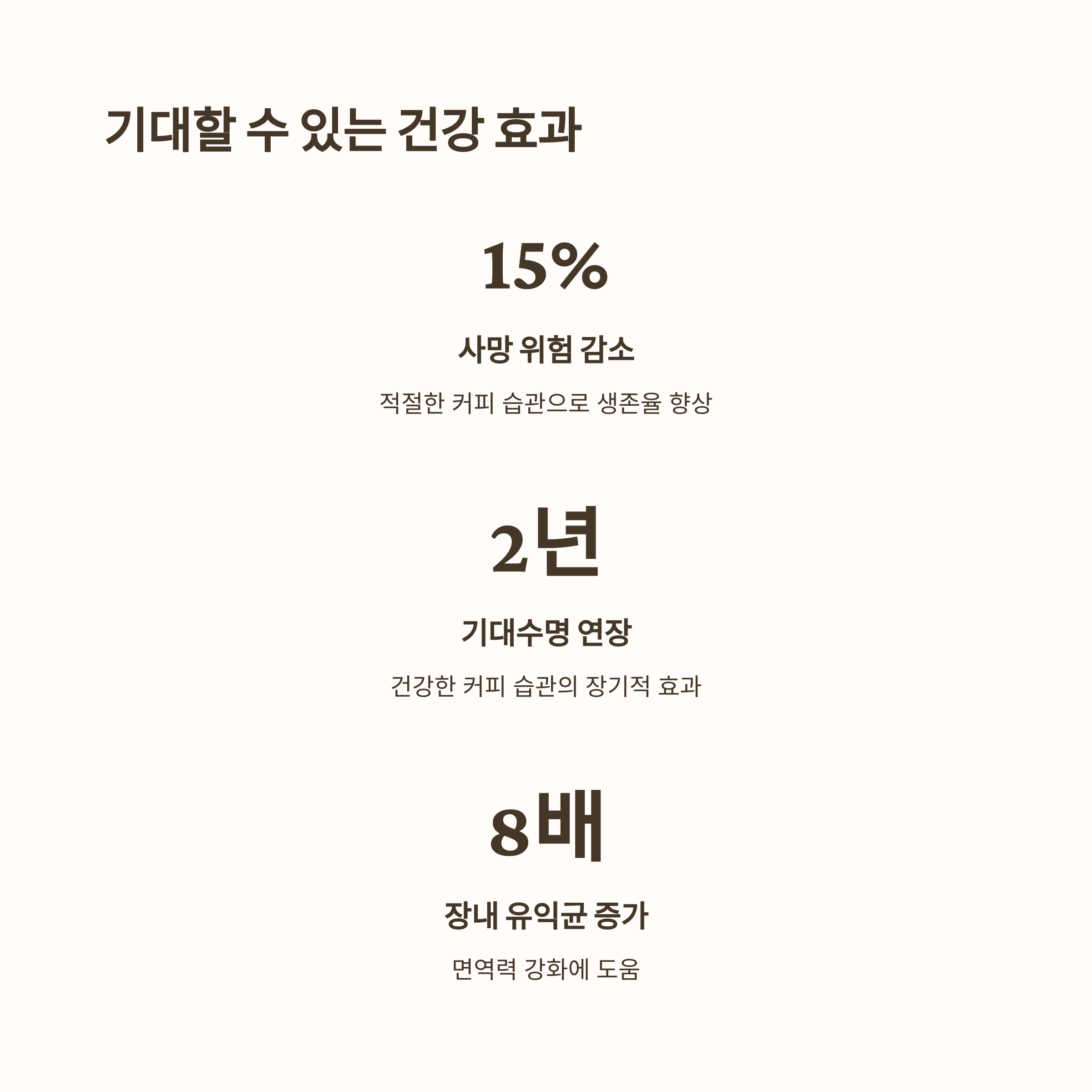 - 커피를 꾸준히 마신 사람은 장내 유익균 수치가 최대 8배나 증가했다는 연구가 있습니다.