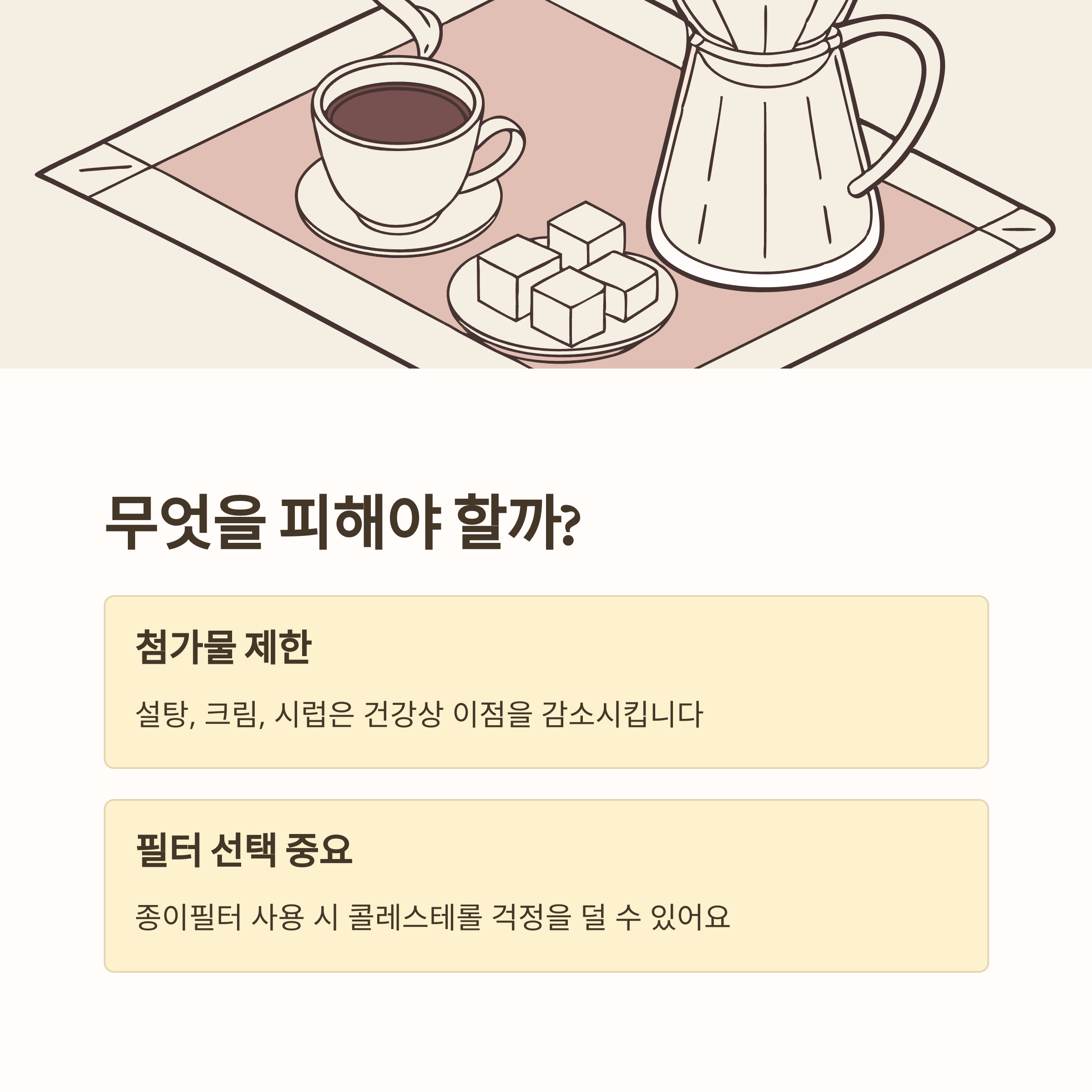 | 주의할 음료 | 설탕·크림 커피, 믹스커피, 라떼 등 |