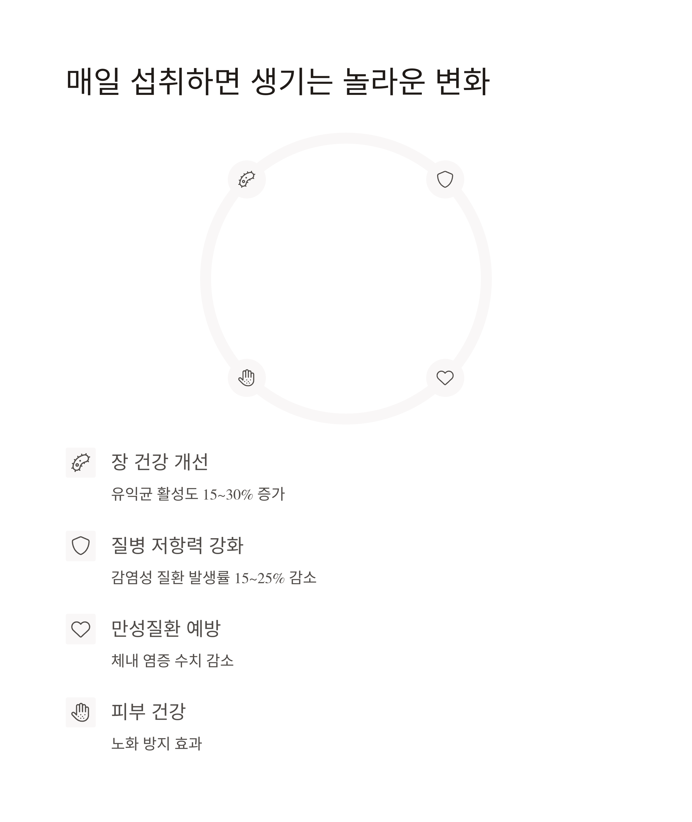 | 장 건강 | 유산균 증가, 소화 기능 강화 |