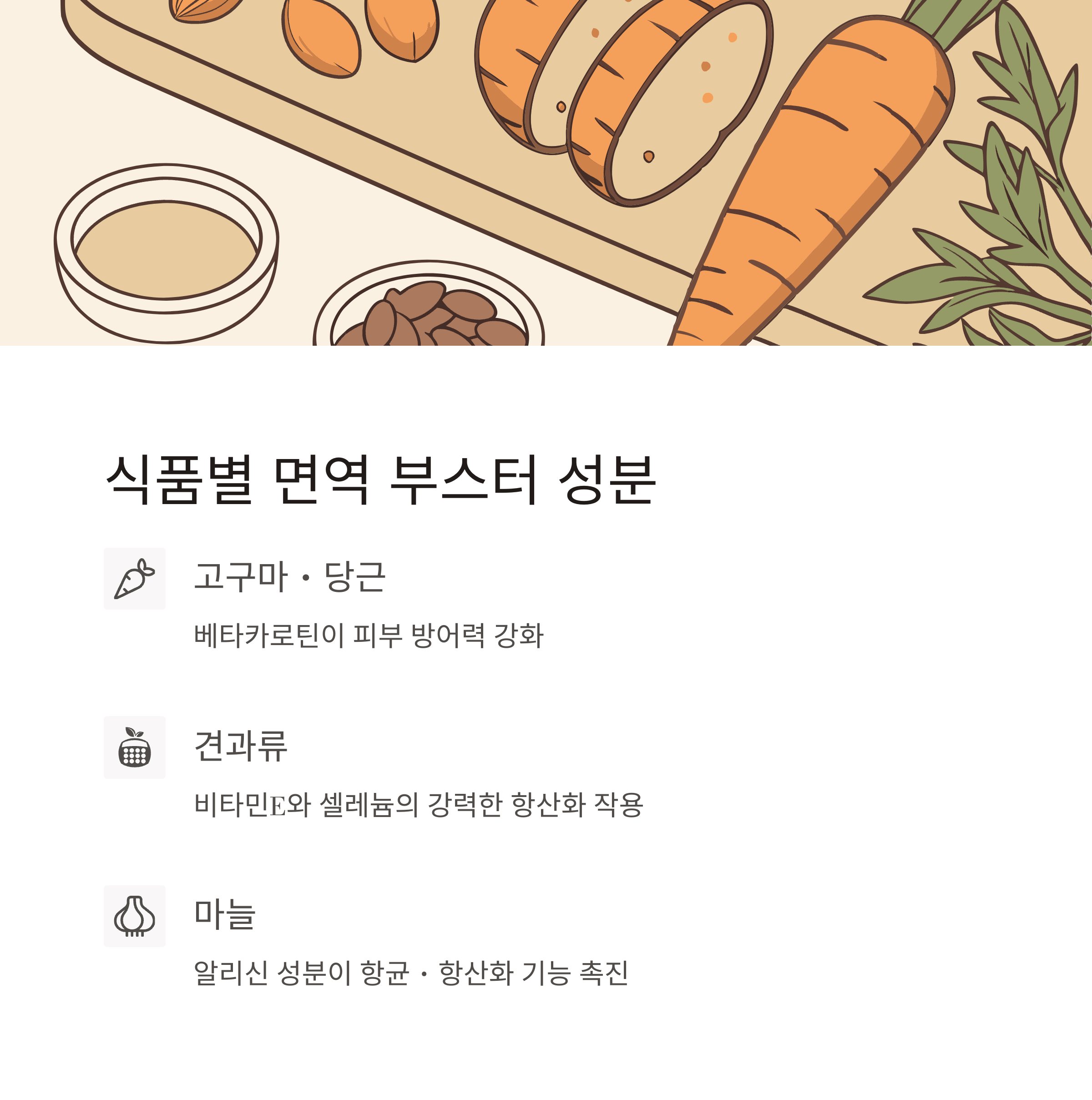 마늘의 알리신 성분은 강력한 항균·항바이러스 작용을 하며, 면역세포를 자극해 외부 병원균에 대한 반응을 빠르게 한다.