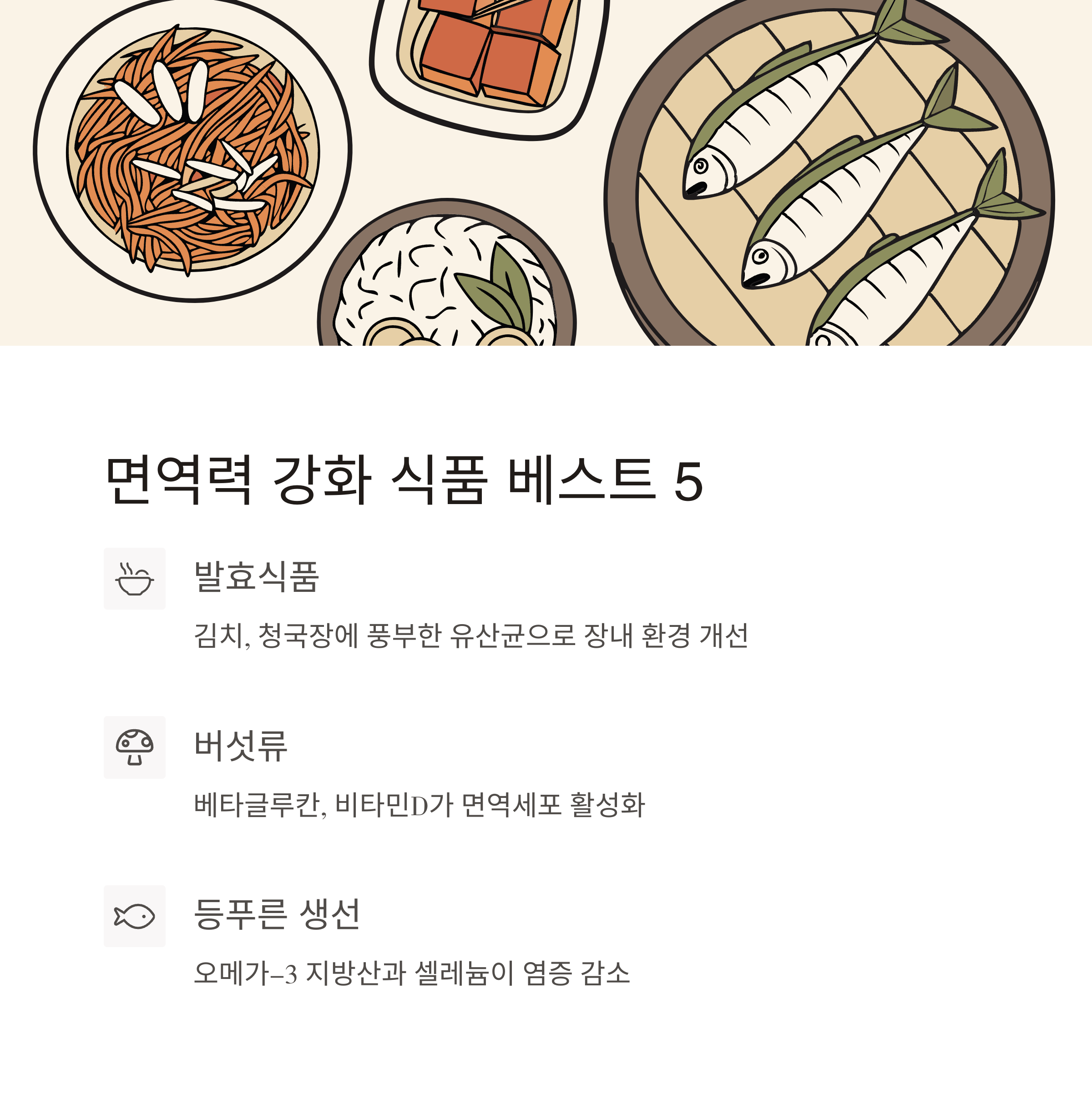 1. 발효식품(김치, 청국장 등)