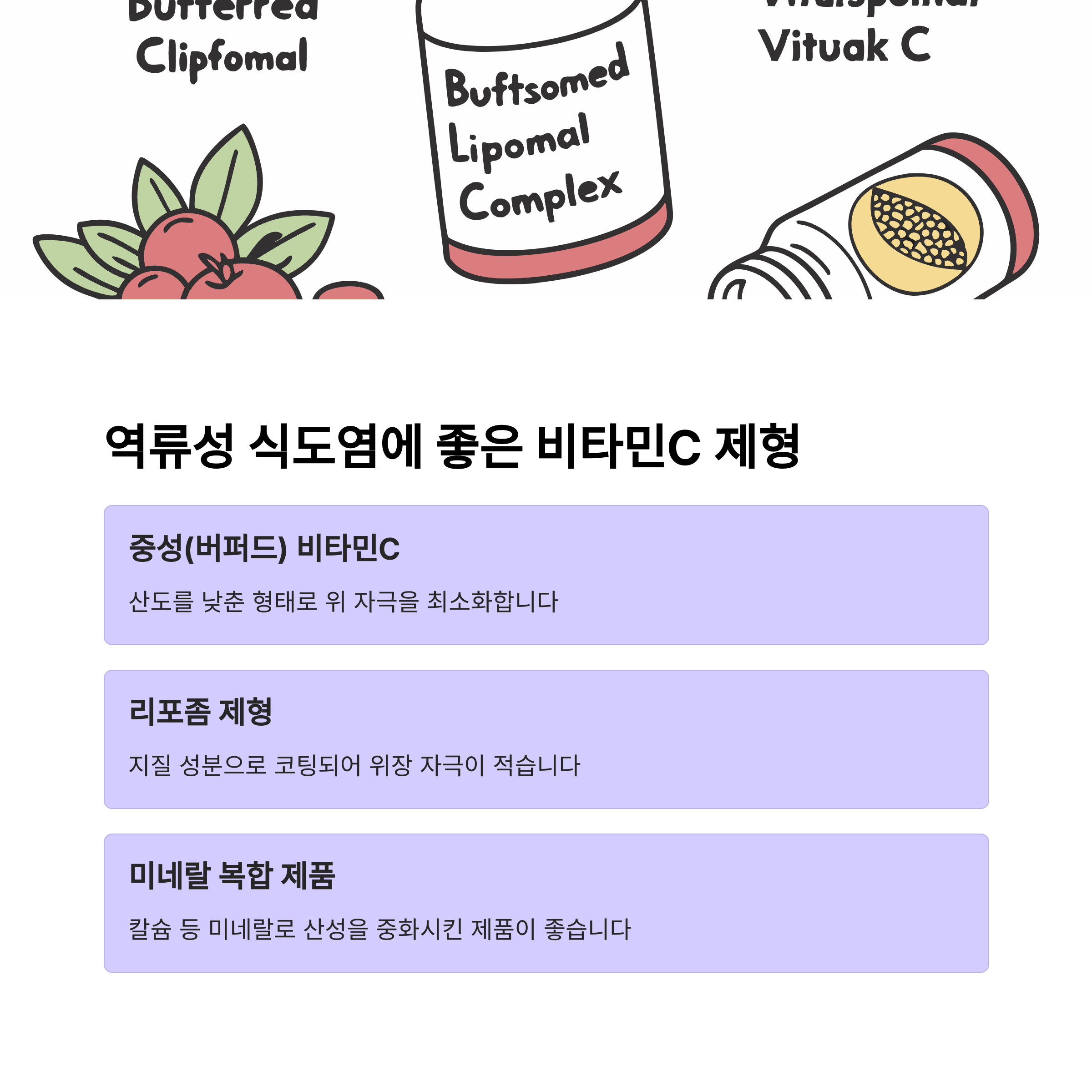 | 중성 제형 선택 | 버퍼드 비타민C는 pH를 중화시켜 위장 자극을 완화함 |