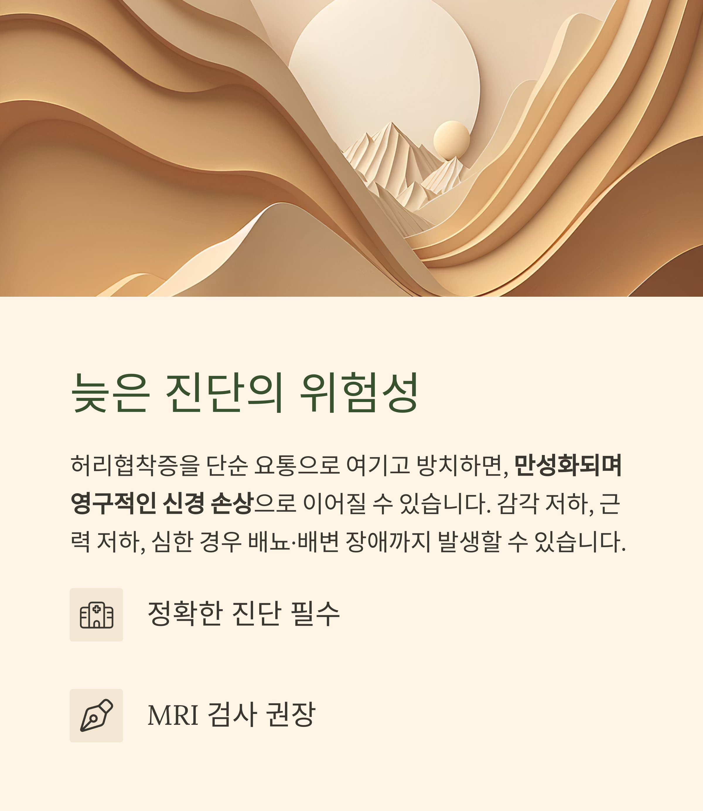 이는 감각 저하, 근력 저하, 심한 경우 배뇨·배변 장애로까지 진행될 수 있어, 정확한 진단이 필수입니다.