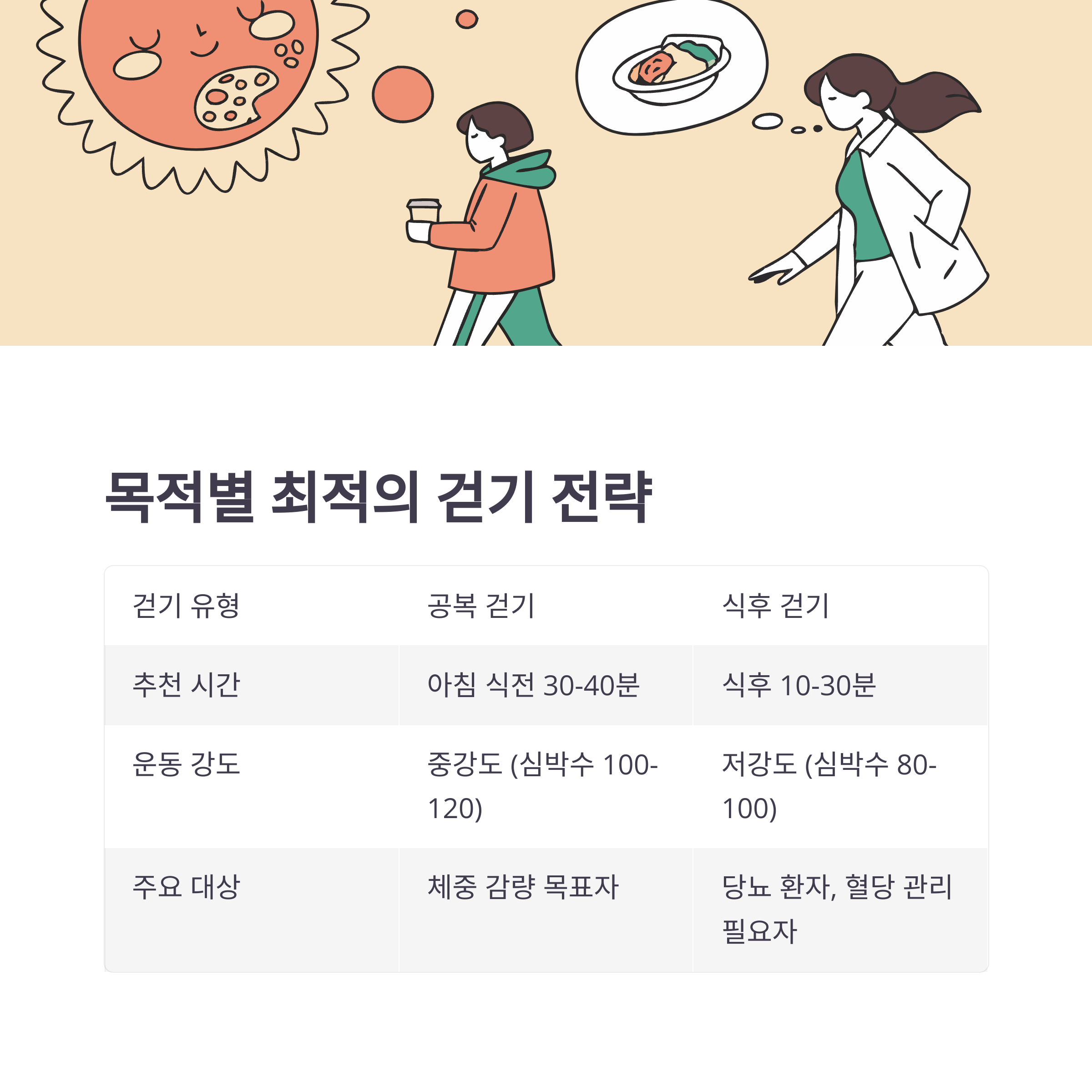 | 걷기 유형 | 공복 걷기 | 식후 걷기 |