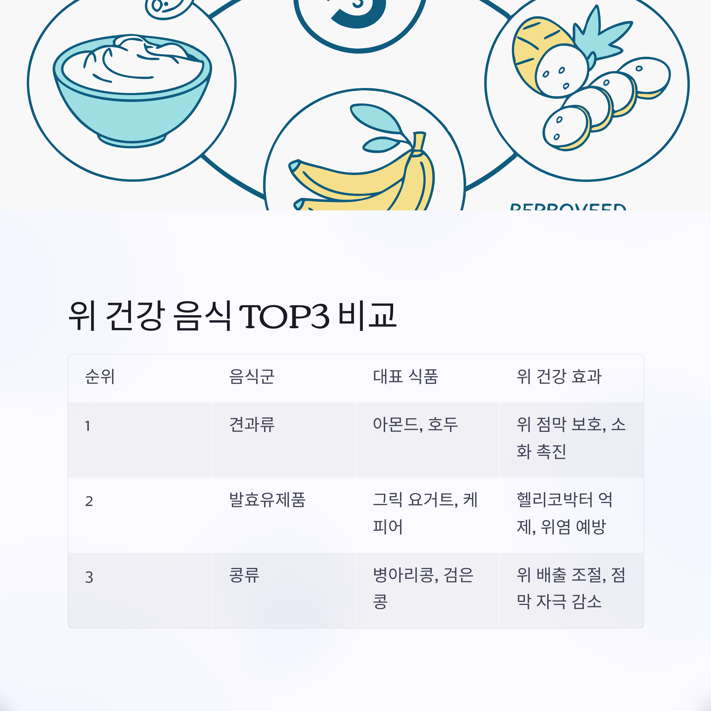 위 건강 음식 TOP3 요약 비교