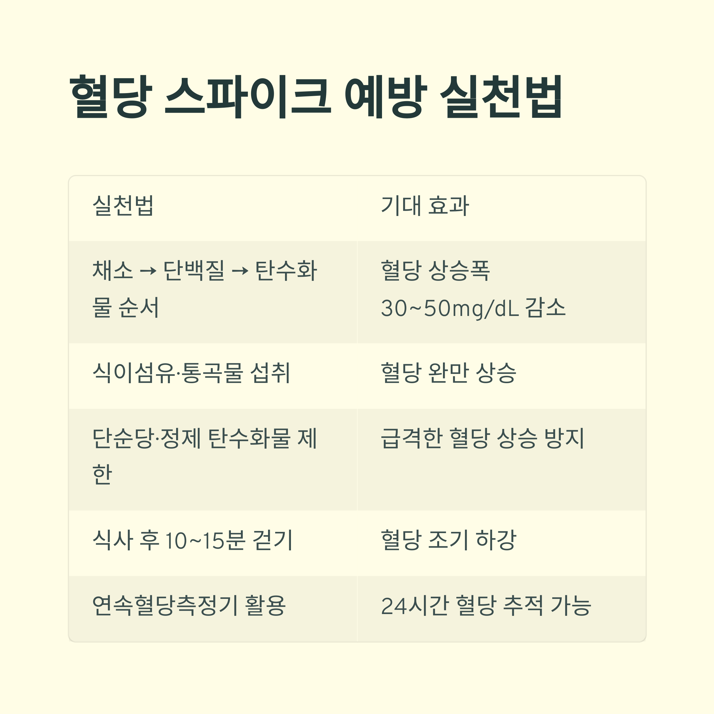 혈당 스파이크 예방 실천법 요약