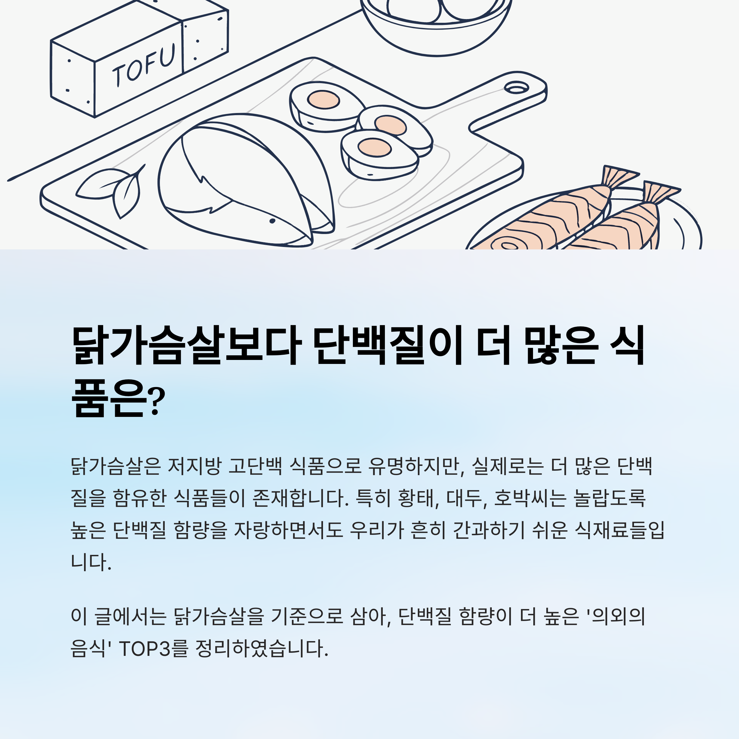 이 글에서는 닭가슴살을 기준으로 삼아, 단백질 함량이 더 높은 ‘의외의 음식’ TOP3를 정리하였습니다.