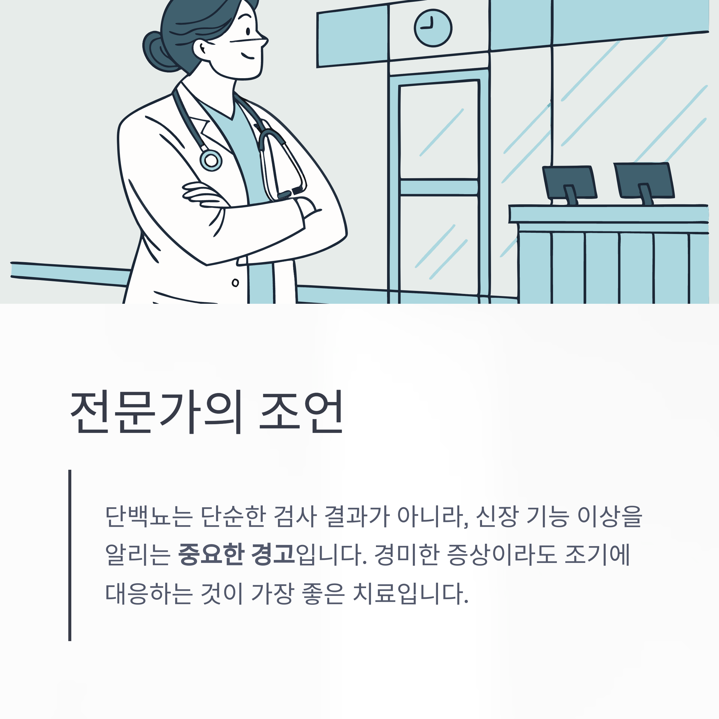 "단백뇨는 단순한 검사 결과가 아니라, 신장 기능 이상을 알리는 중요한 경고입니다.