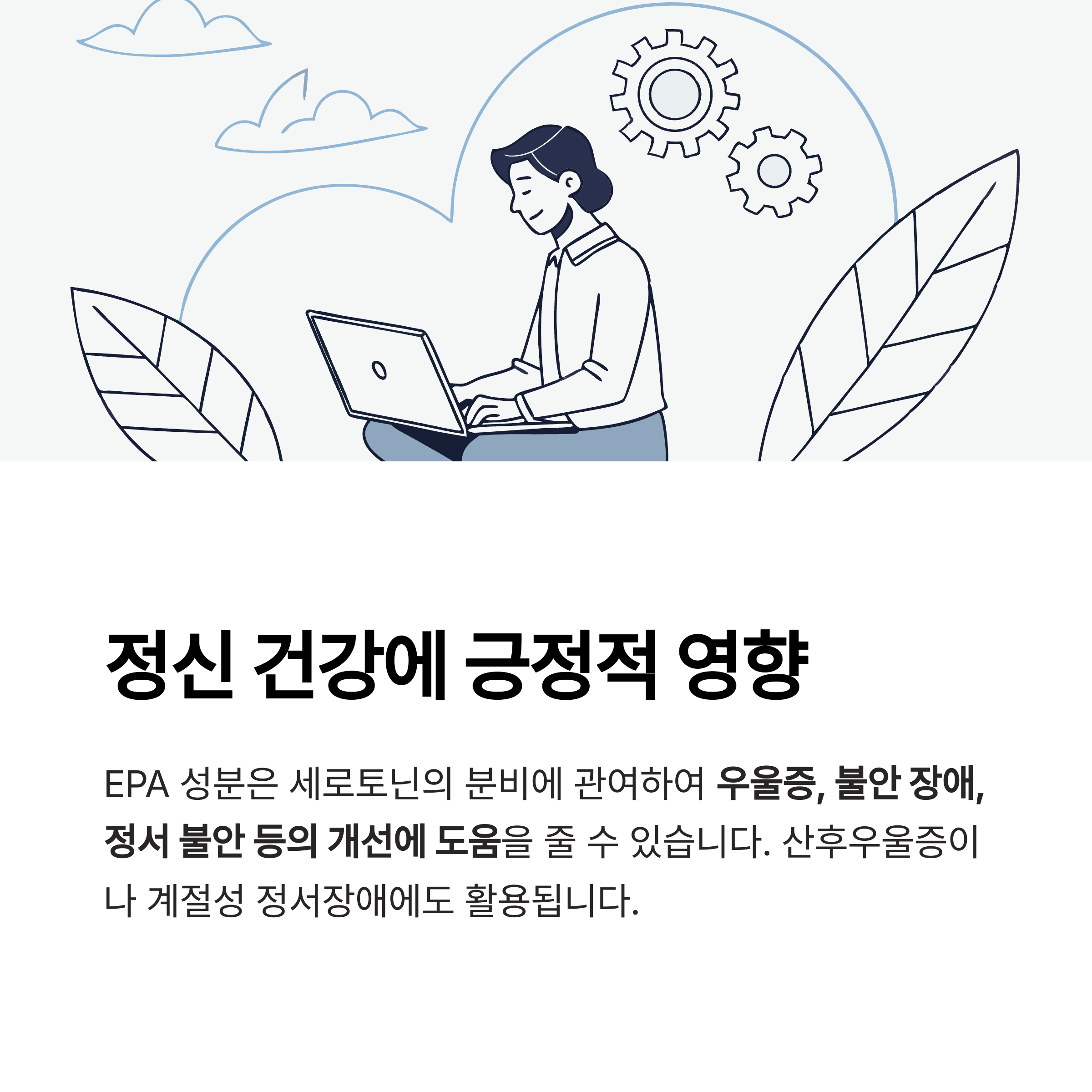 EPA 성분은 기분을 조절하는 신경전달물질인 세로토닌의 분비에 관여하여