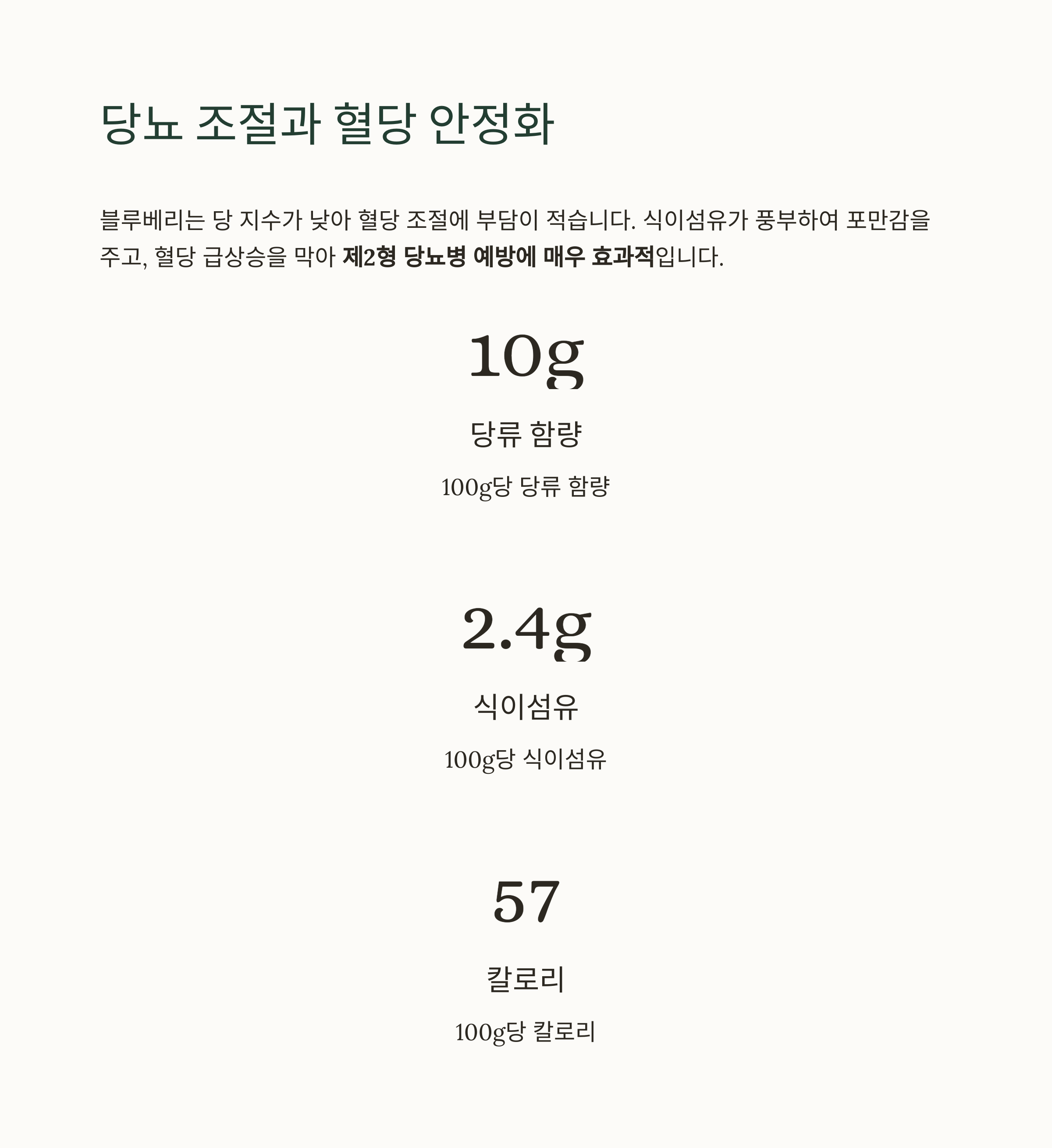 블루베리는 당 지수가 낮아 혈당 조절에 부담이 적습니다