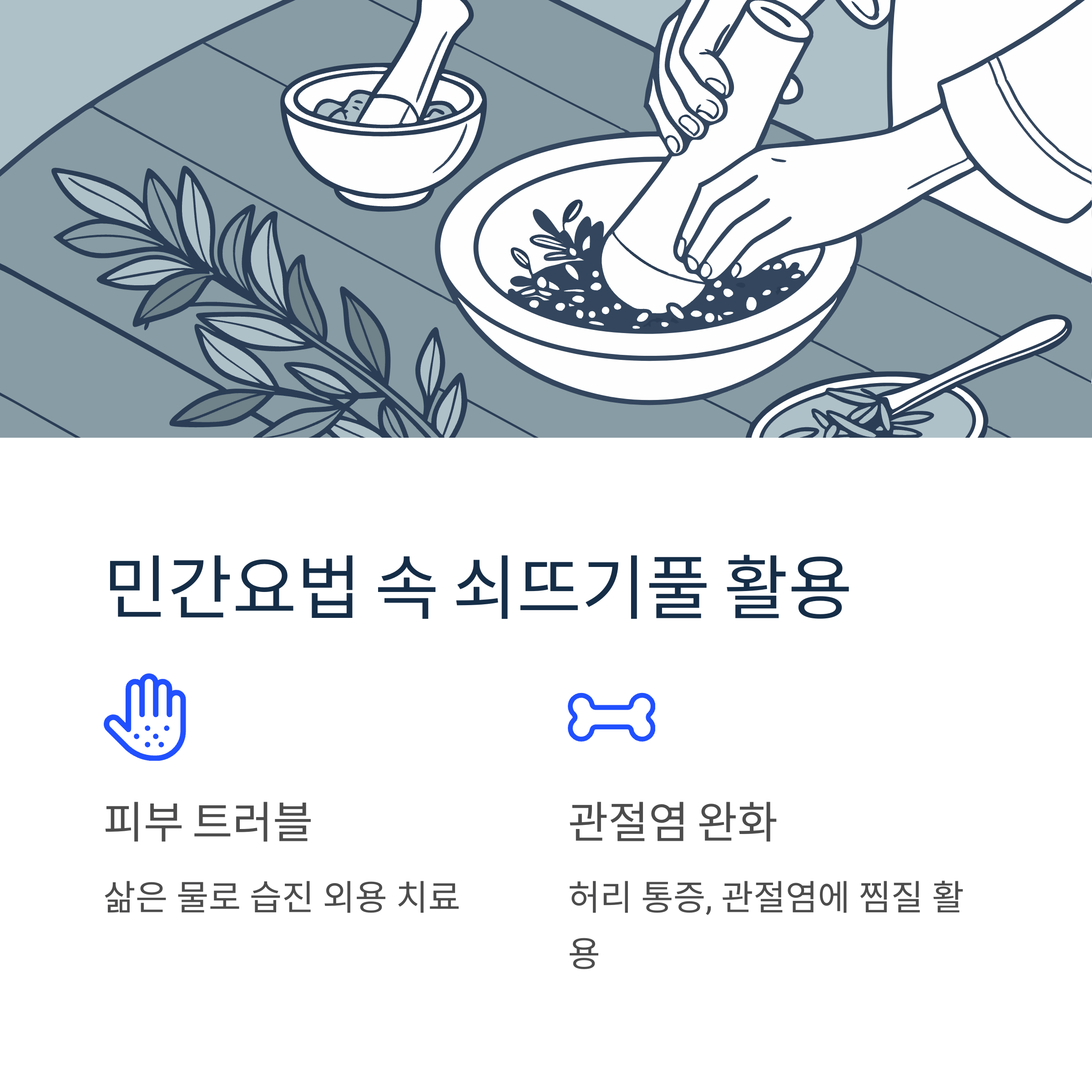 또한 허리 통증이나 관절염 통증 완화를 위해 찜질 형태로 사용한 기록도 있습니다.