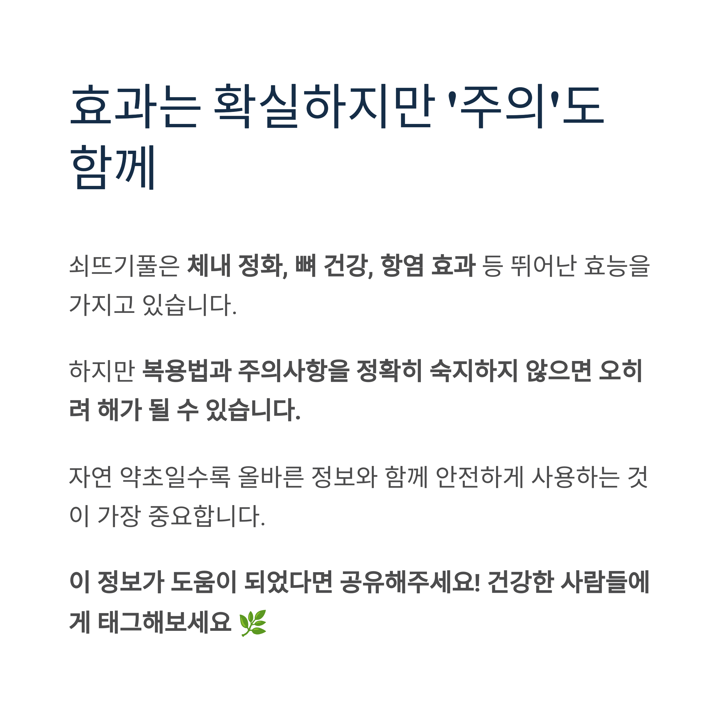 자연 약초일수록 올바른 정보와 함께 안전하게 사용하는 것이 가장 중요합니다.