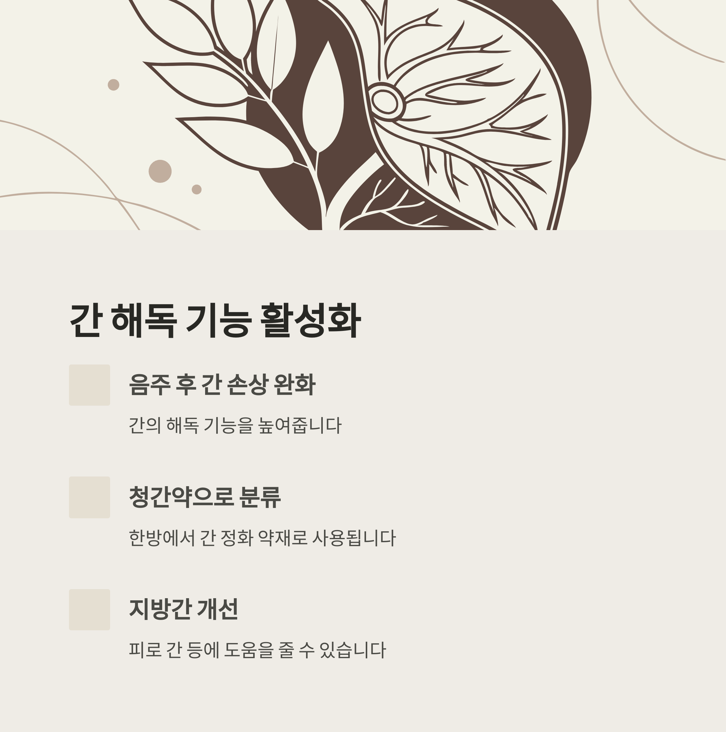 | 간 기능 | 간세포 보호, 해독 촉진 | 지방간 개선, 음주 후 회복 |
