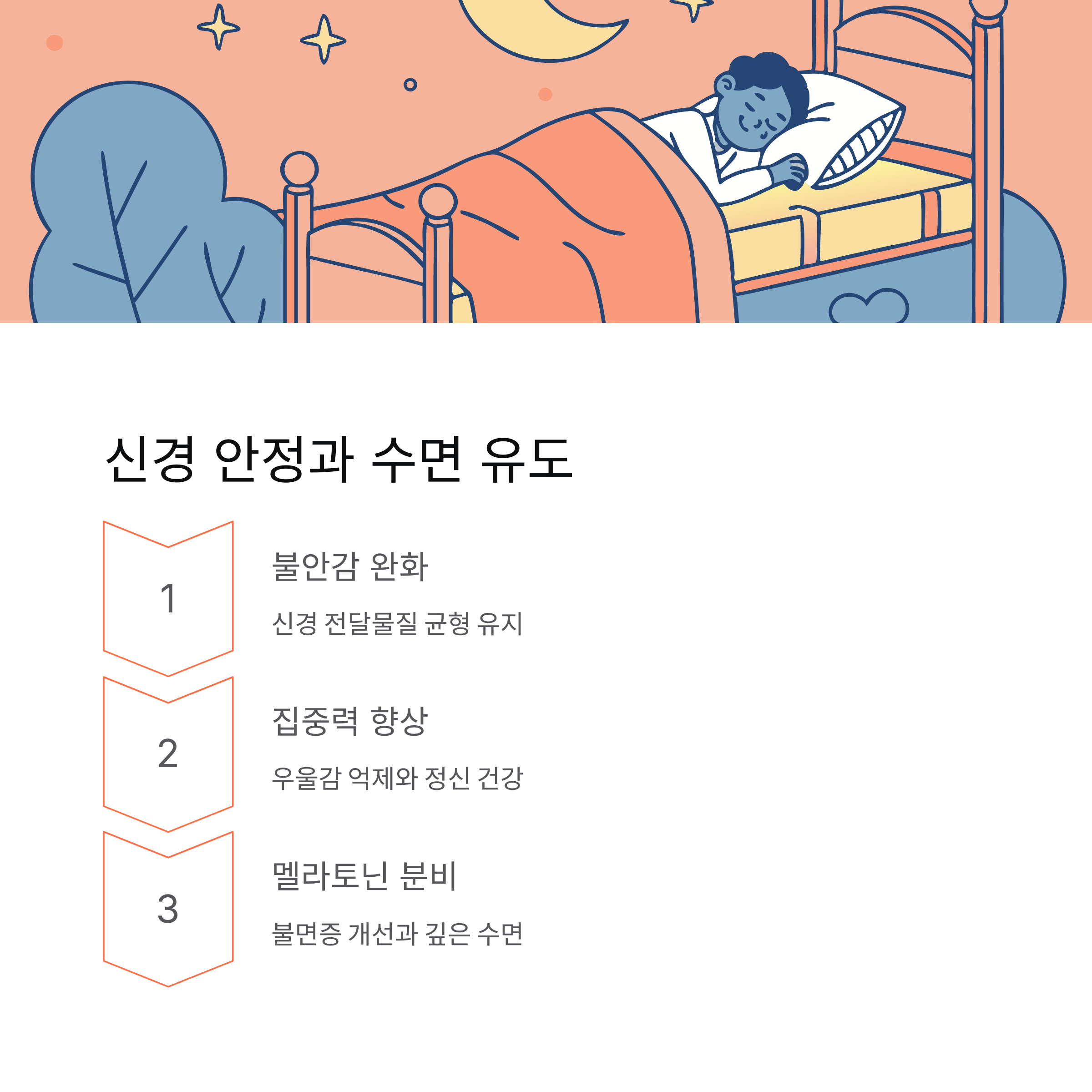 마그네슘은 신경 전달물질의 균형을 유지하여 불안감 완화, 집중력 향상, 우울감 억제에 도움을 줍니다.