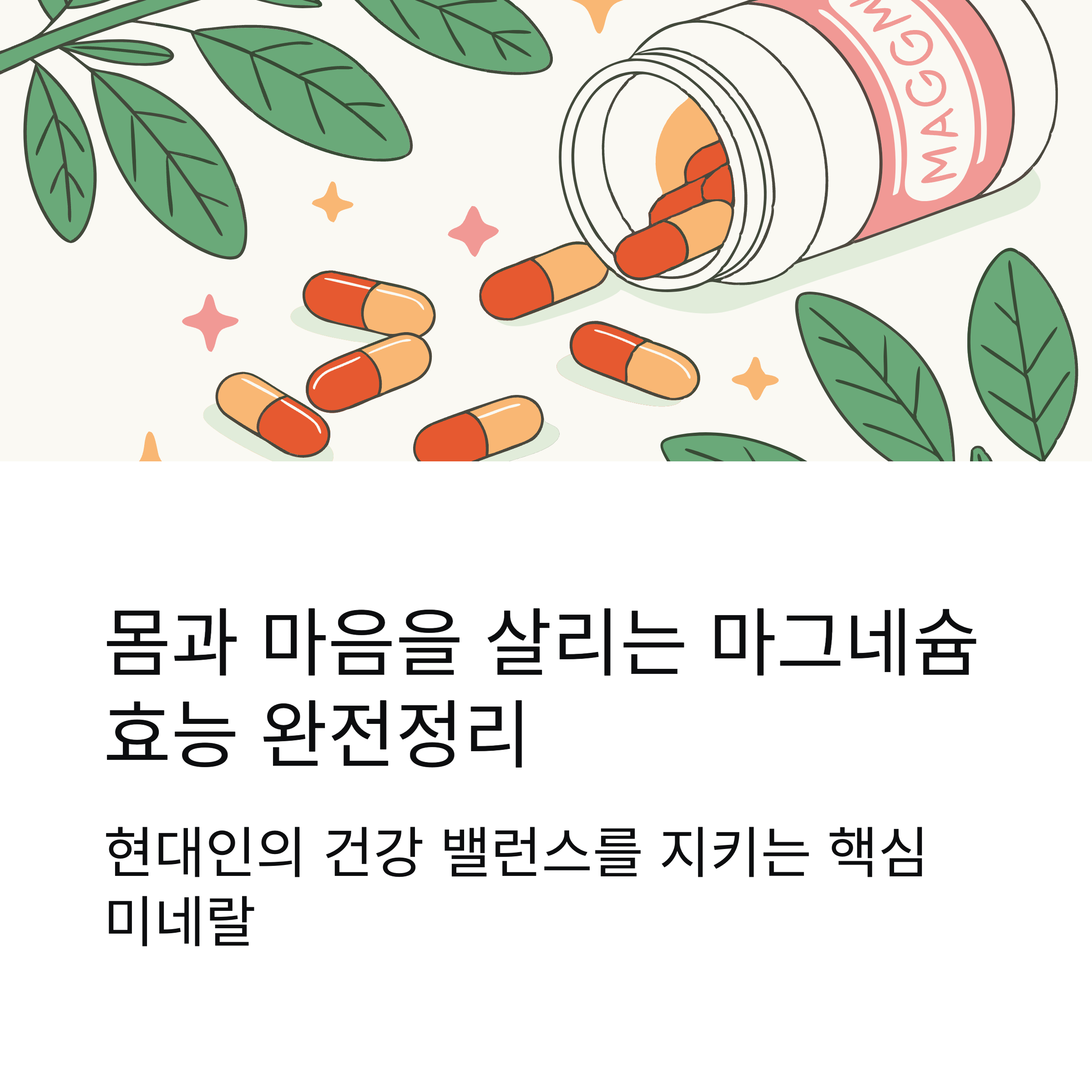 근육, 신경, 심장, 뼈 건강뿐 아니라 스트레스 완화와 수면 개선에도 필수적인 역할을 합니다.