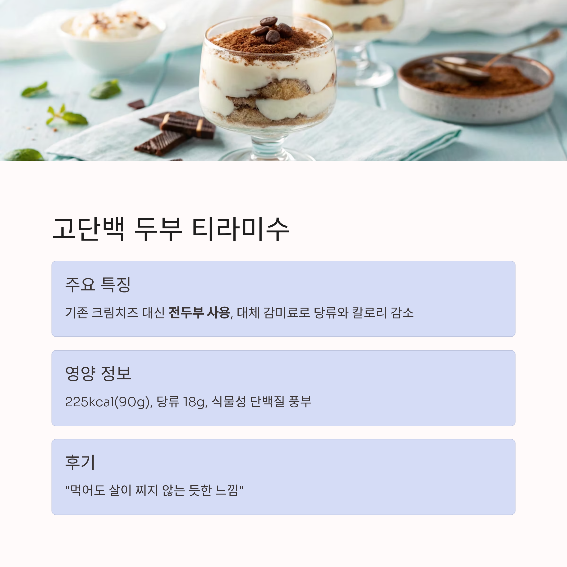 • 두부 티라미수: 고단백·저칼로리 디저트의 대표주자