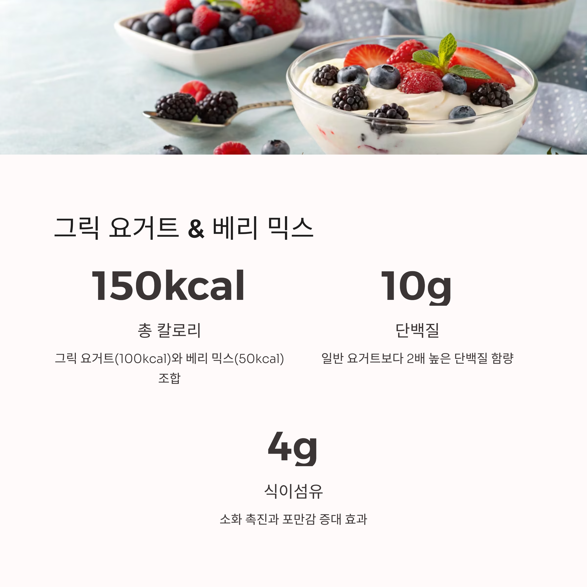 • 그릭 요거트 & 베리 믹스: 영양과 포만감을 모두 만족시키는 조합