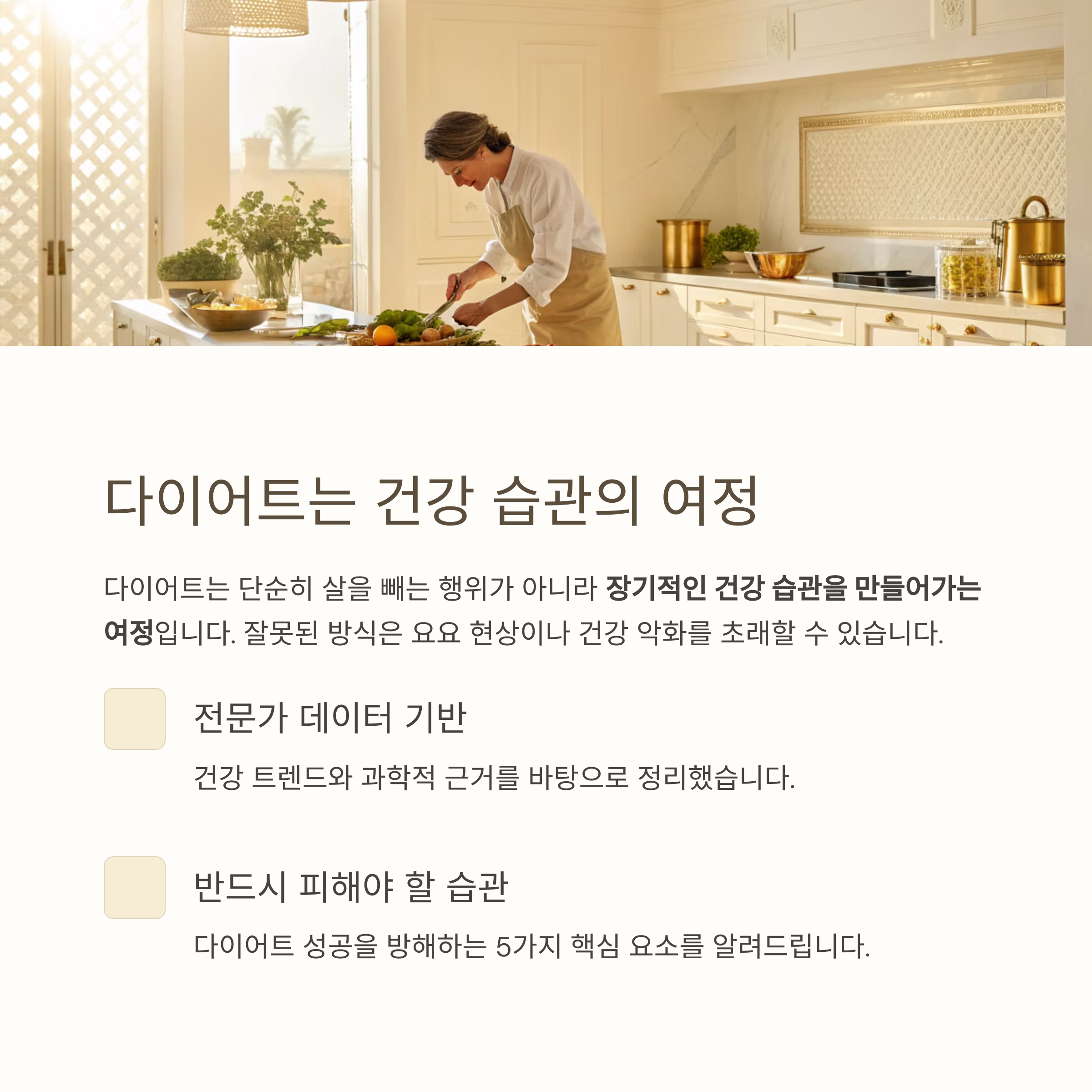 "다이어트는 살을 빼는 과정이 아니라 내 몸을 돌보는 생활의 변화입니다."