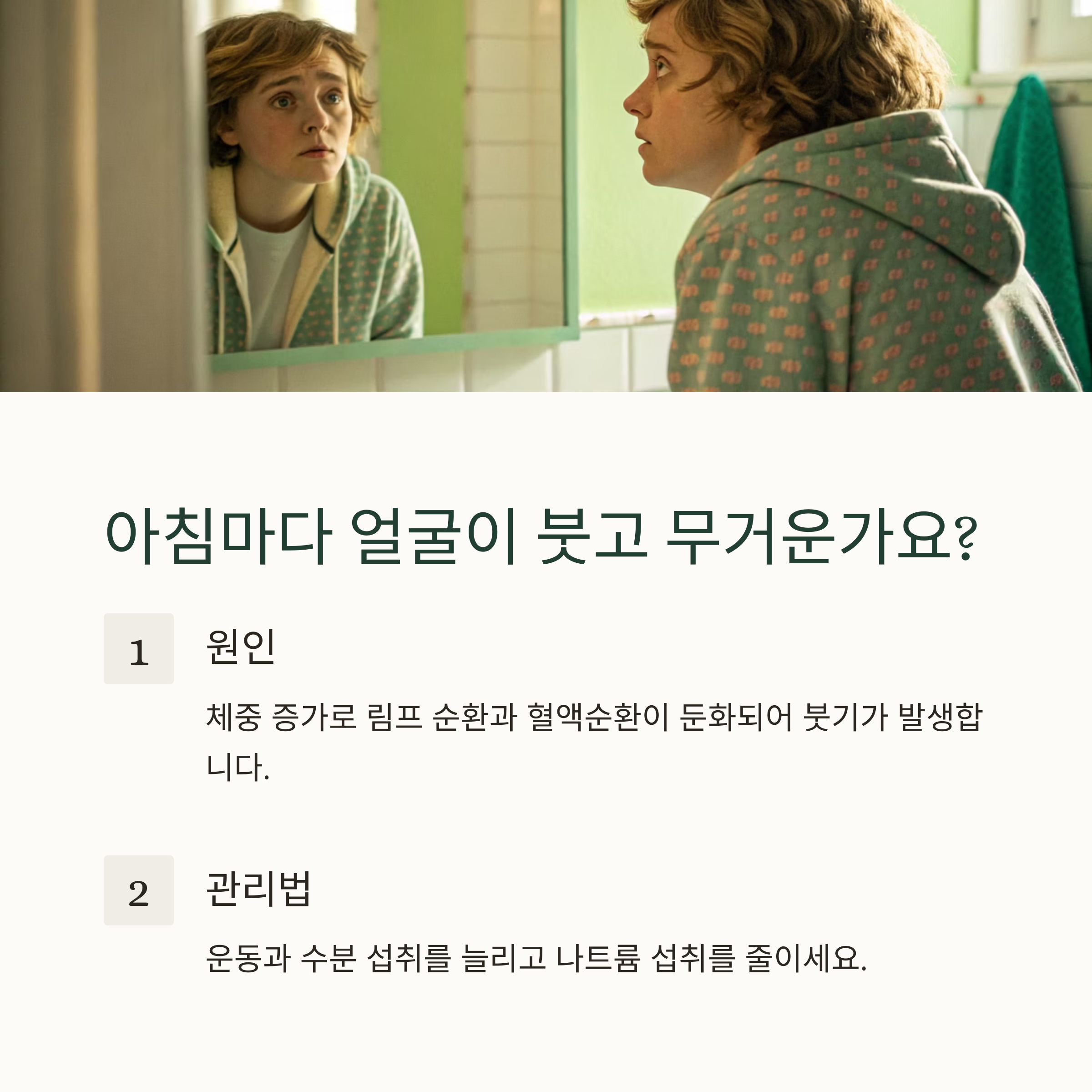 아침마다 얼굴이 붓고 몸이 무겁게 느껴지나요?