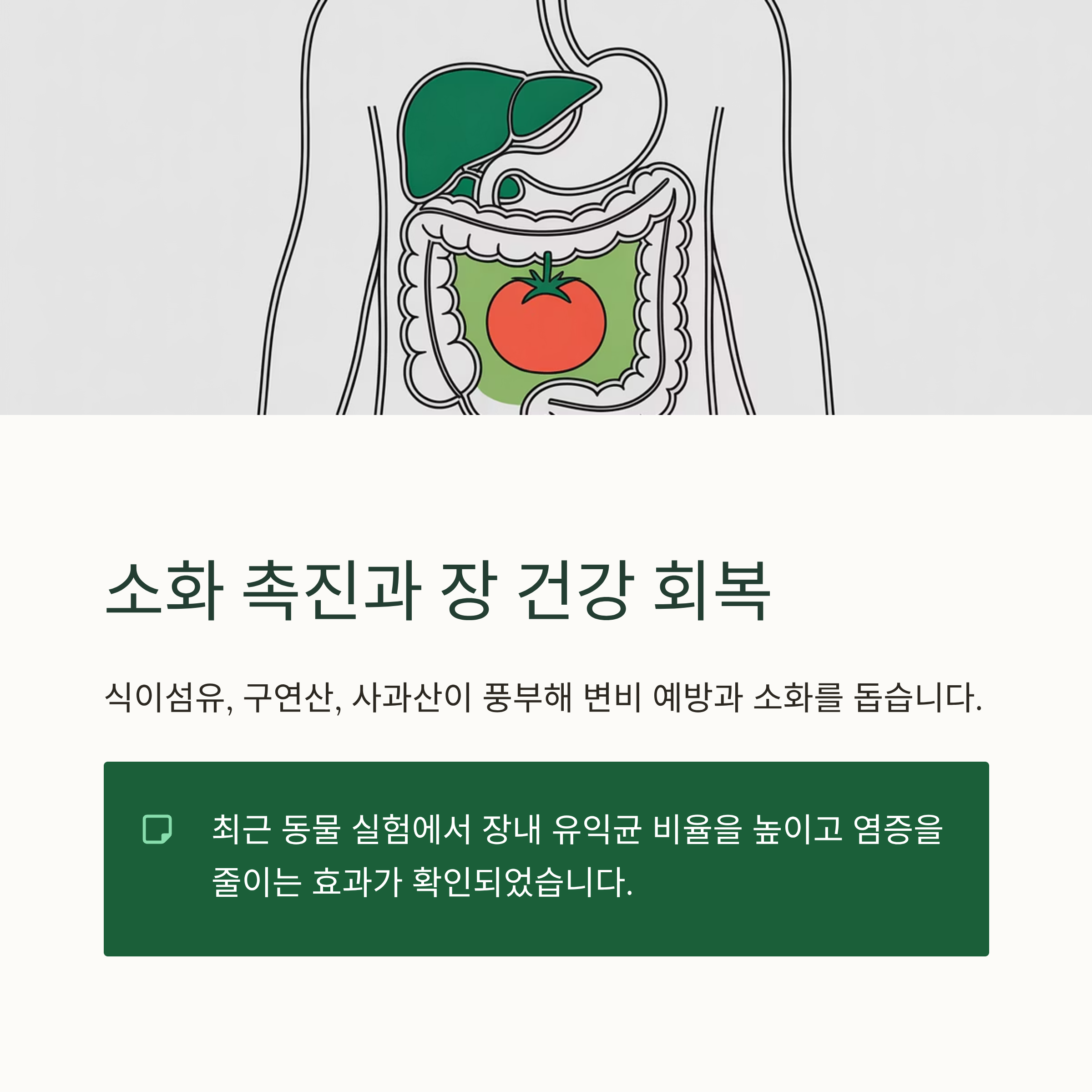 최근 연구에서는 장내 유익균 비율을 높이고 염증을 줄이는 효과가