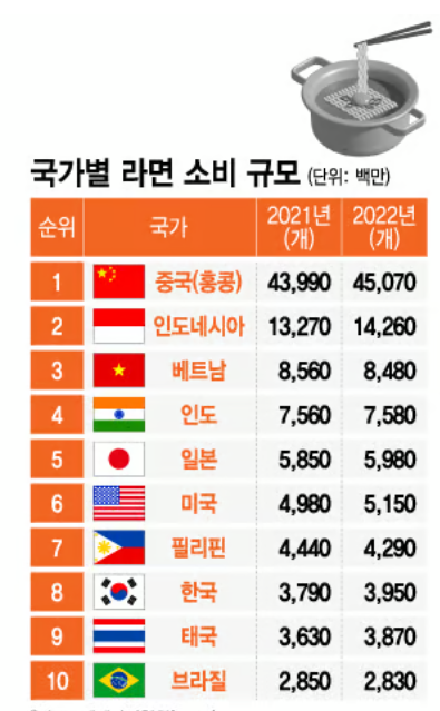 우리나라는 세계에서 두 번째로 라면을 많이 소비하는 나라입니다.