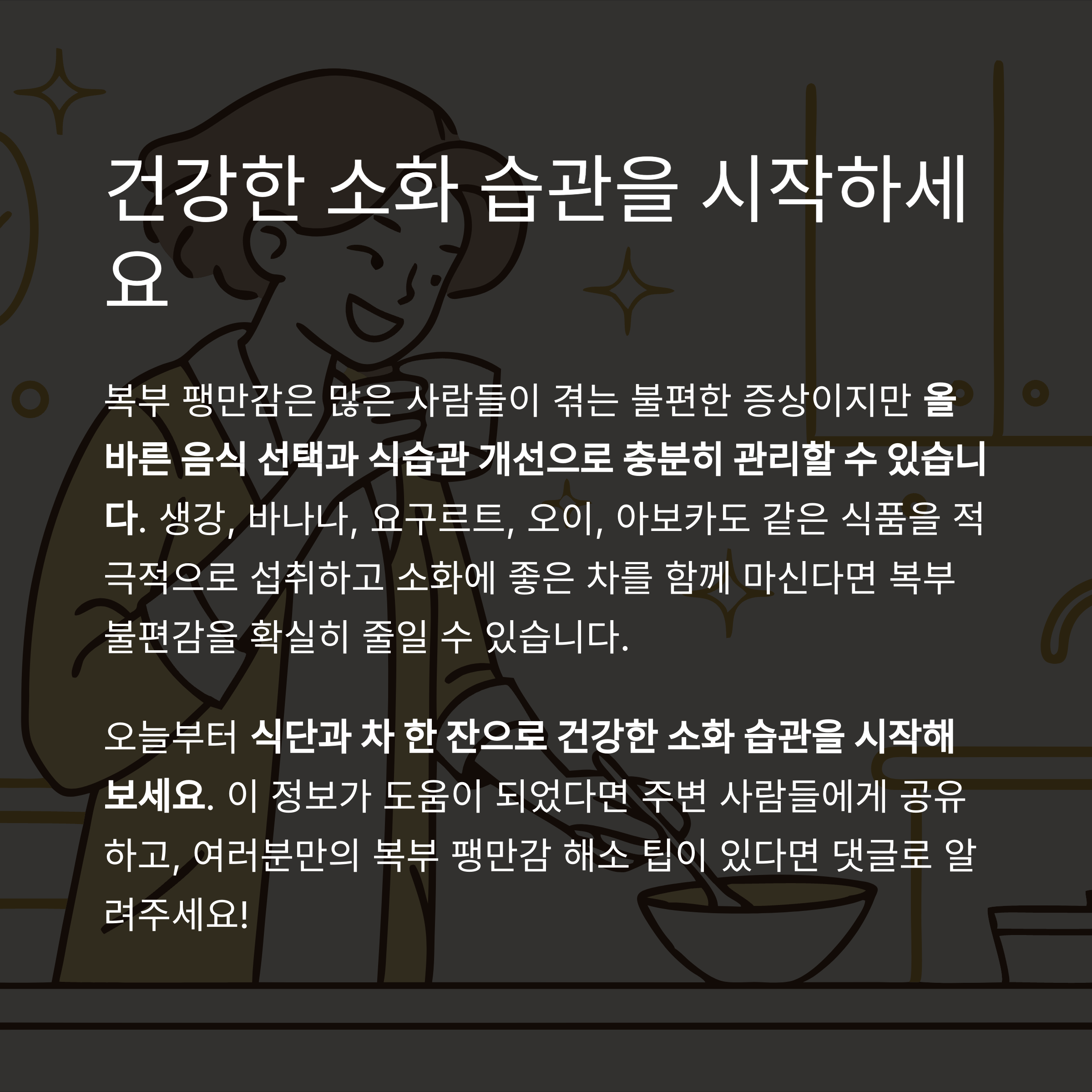 이 글에서는 복부 팽만감 완화에 도움을 주는 음식, 차, 그리고 주의해야 할 식품까지