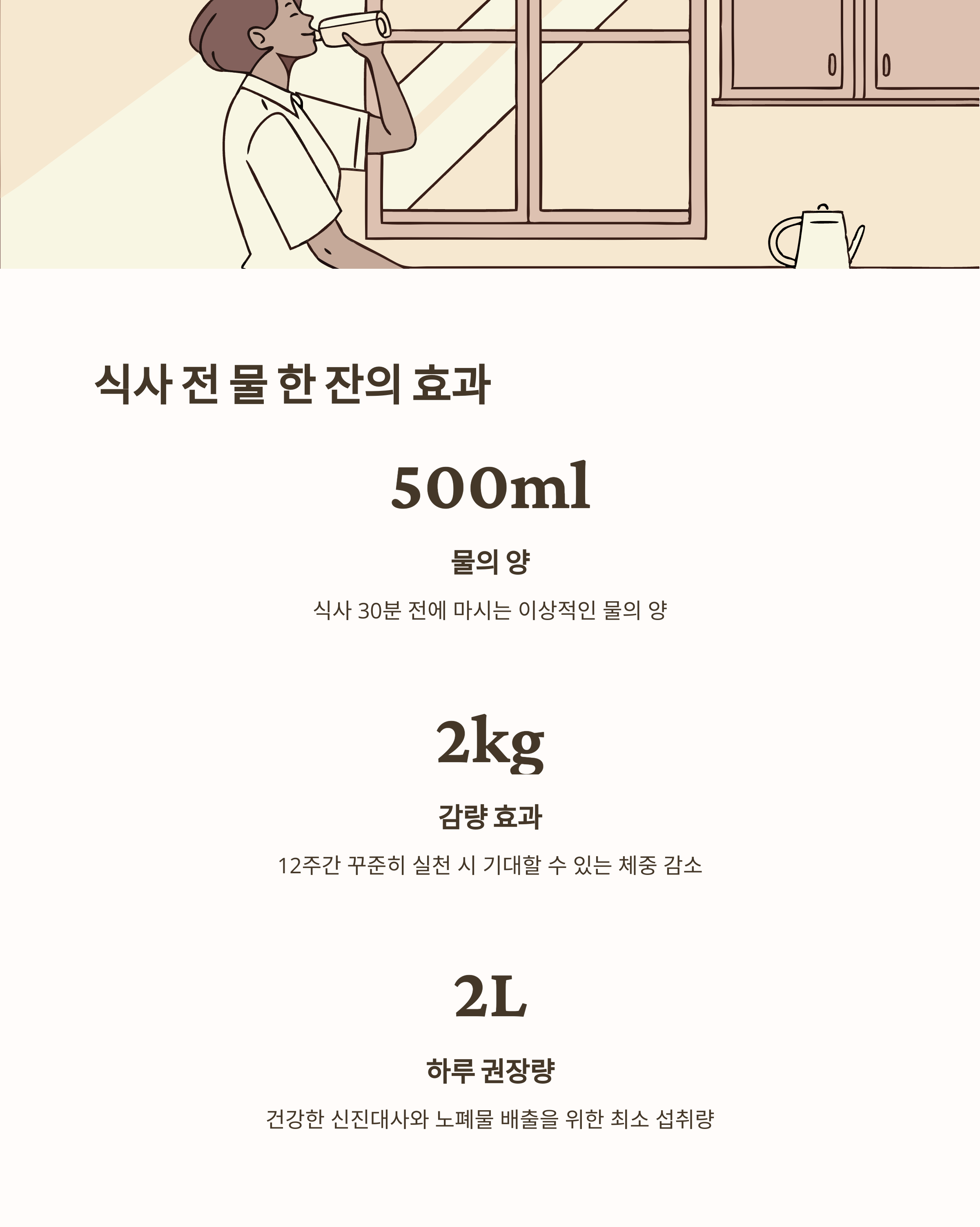 | 식사 전 500mL 물 마시기 | 12주간 2kg 감량, 포만감 증가, 신진대사 활성화 |
