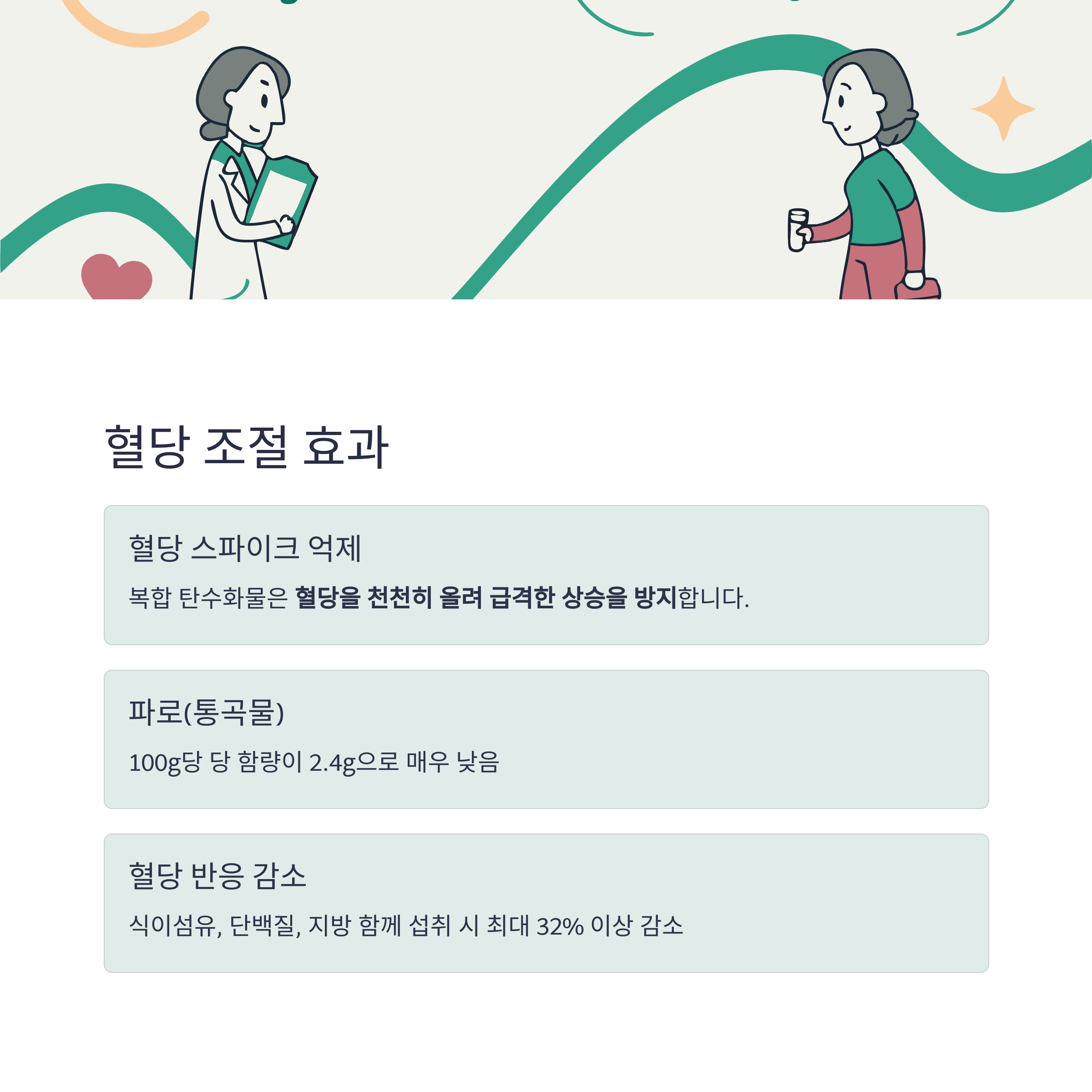 복합 탄수화물은 혈당을 천천히 올려 혈당 스파이크를 억제하는 특성이 있습니다.