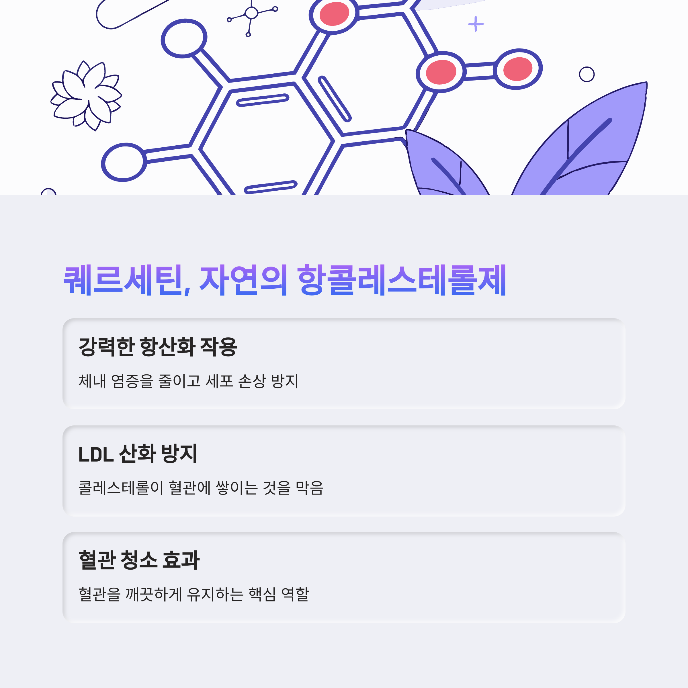 "퀘르세틴은 자연의 항콜레스테롤제"라고 불릴 만큼 그 효과는 입증되어 있습니다.