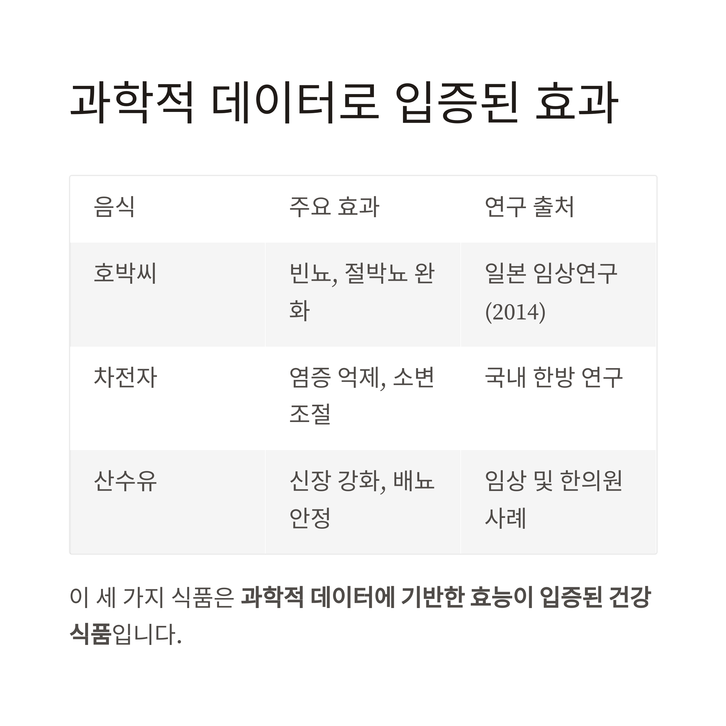 차전자, 산수유, 호박씨는 모두 임상과 연구에서 검증된 개선 식품으로
