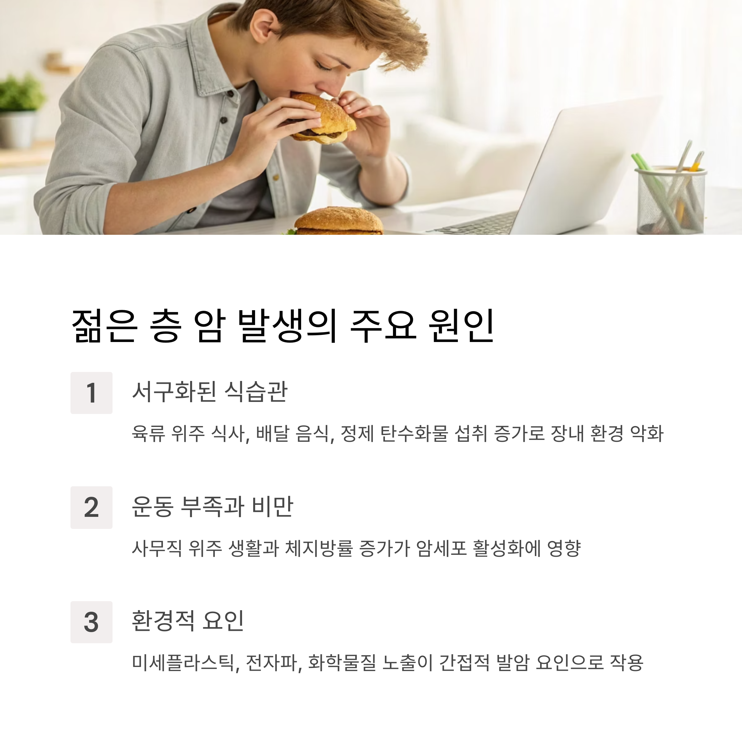 2. 젊은 층 암 발생의 주요 원인은 무엇인가?