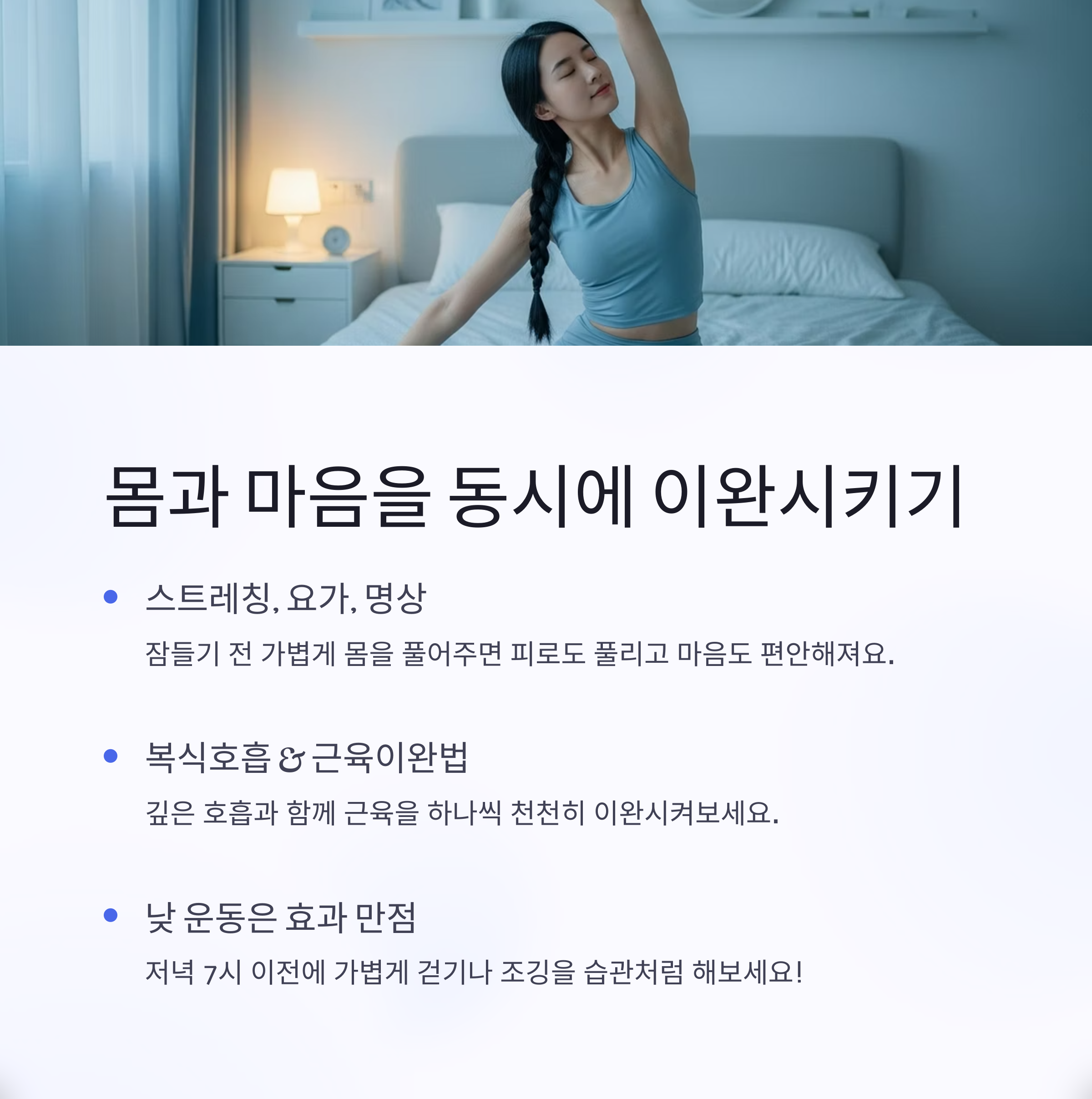 | 🥛 따뜻한 우유 | 트립토판 풍부, 스트레스 완화 |